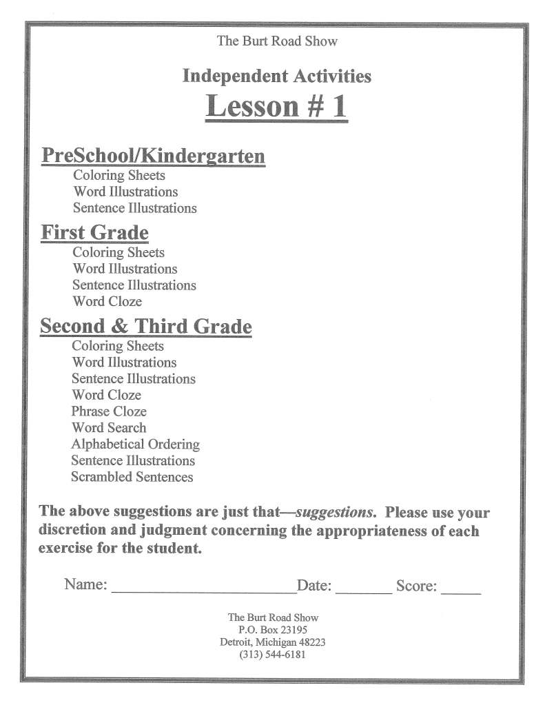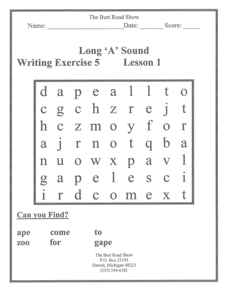 Activity Worksheets for Lesson #1 Long A sound