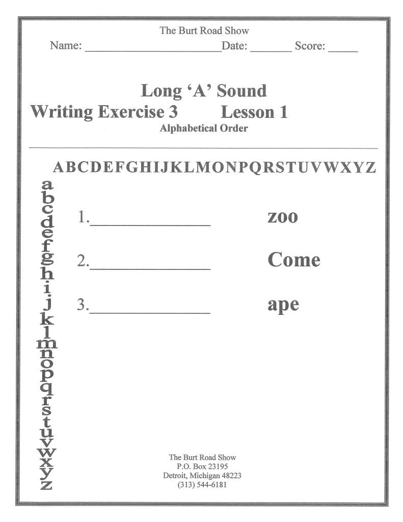 Lesson #1 Long A sound